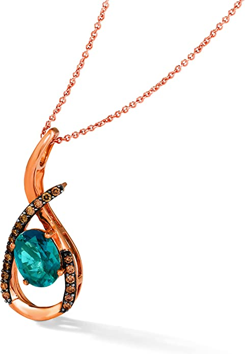 1/5 Carat Diamond and 2 Carat Oval Blue Topaz Open Teardrop Pendant Necklace for Women in 14k Rose Gold (Brown, SI1-SI2, cttw) on 18 Inch Chain by LeVian