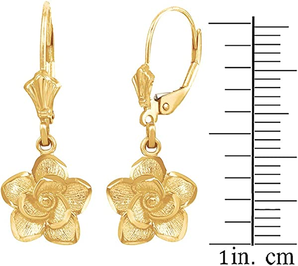 Certified 14K Rose, White, or Yellow Gold Rose Flower Leverback Earrings