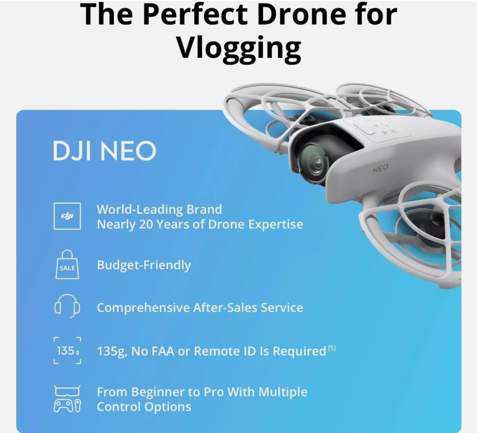 Self-flying capability with AI tracking, QuickShot modes, palm takeoff/landing—ideal for hands-free shots