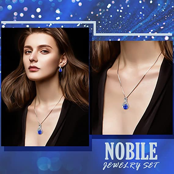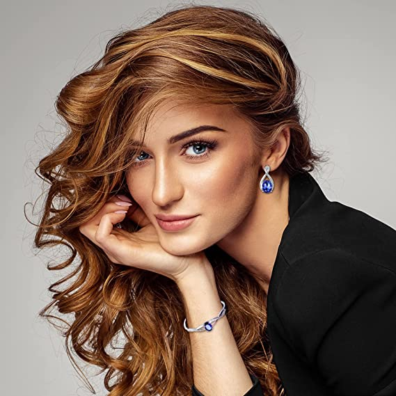 • ♥SAPPHIRE MATERIALS♥ The sapphire necklace, the bangle bracelet and the stud earrings are made with crystals from Menton Ezil which is a brand authorized by Swarovsk. Environmentally friendly material Zinc Alloy, Lead-Free & Nickle-Free, passed Swiss SGS Inspection Standard, no harm to health